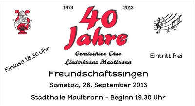 Freundschaftssingen am Samstag, 29. September 2013 - Stadthalle Maulbronn