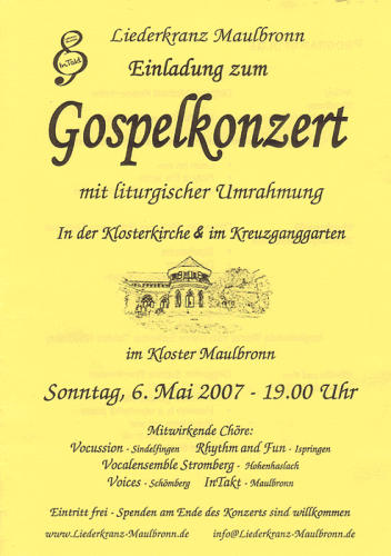 Gospelkonzert am Sonntag, 6. Mai 2007 in der Klosterkirche Maulbronn