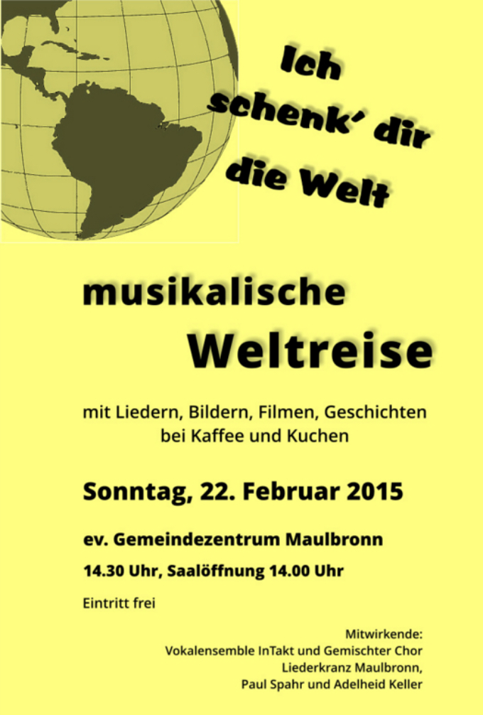Liedernachmittag, am Sonntag, 22. Februar 2015 im ev. Gemeindezentrum Maulbronn