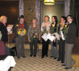 Bestehen zurückblicken, sieben Sängerinnen der ersten Stunde erhielten eine Urkunde und Rose als Dankeschön: Sabine Engel-Koch, Monika