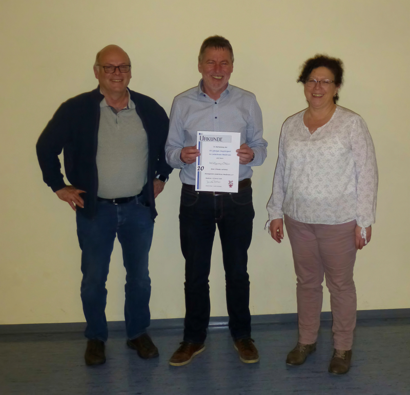Wolfgang Öhler für 20 Jahre Singen im Liederkranz Maulbronn.