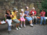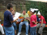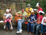 Getränk gestillt. Und schon wieder hatten sich die Kinder um Wolfgang versammelt, denn er hatte nochmals zu seiner Gitarre gegriffen,
