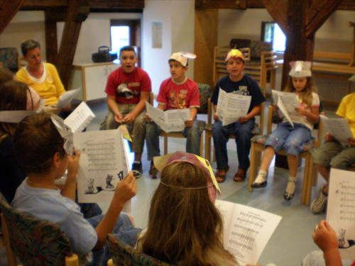 als Kanon besungen wurden. Für die älteren Kinder hatte Susanne sogar einen Rap ausgesucht und Wolfgang begleitete die Sänger auf