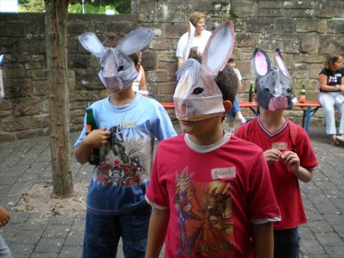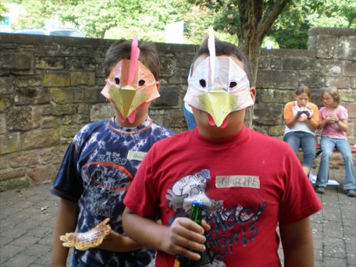zusammengeklebt und ein Gummiband befestigt - fertig. Stolz präsentierten die Kinder ihre bunten Tiermasken und begaben sich