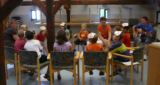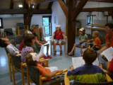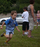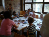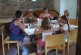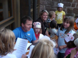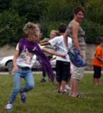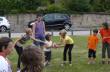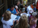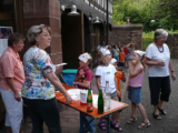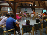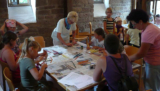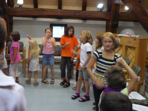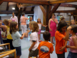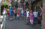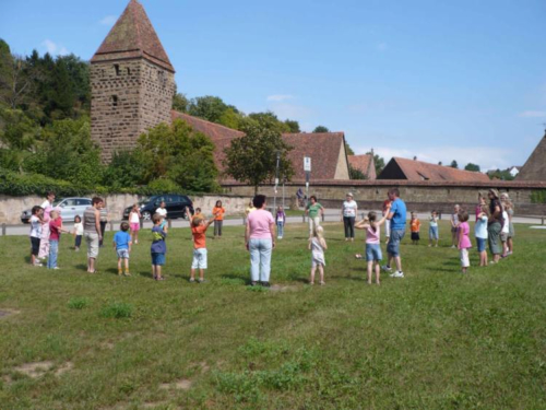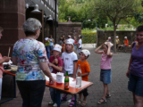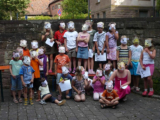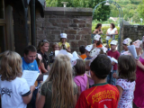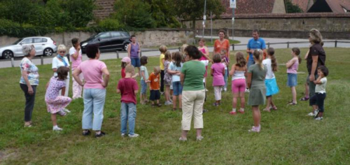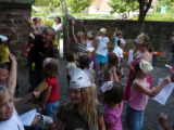 Tierisch gute Laune herrschte unter den 23 Kindern, die am heutigen Freitagnachmittag an unserem Kinderferienprogramm teilnahmen, das Motto lautete "Tierischer Liedernachmittag".Nach der Kennenlernrunde mit einem Spiel auf dem Rasen begann eine Kindergruppe unter Gitarren- und Klavierbegleitung mit dem Einstudieren einiger lustiger Tierlieder, was den Kindern einen Heidenspaß bereitete. Währenddessen bastelte die andere Gruppe mit Eifer Tiermasken. Es konnte zwischen Affen, Bären und Leoparden gewählt werden. Nachdem die Gruppen gewechselt hatten, trug am Ende jedes Kind eine phantasievolle Maske. Nun stellten sich auch Hunger und Durst ein, so dass die von den Helferinnen im Hof gebackenen Waffeln und die Getränke im Nu aufgebraucht waren. Zum Schluss sangen die Kinder gemeinsam die gelernten Lieder und so klang der Nachmittag entsprechend seinem Motto mit tierischen Liedern aus. Manche Kinder bedauerten, dass der schöne Nachmittag so früh zu Ende war. Ein herzliches Dankeschön geht hiermit an alle Helferinnen und Helfer, die zum guten Gelingen beigetragen haben.