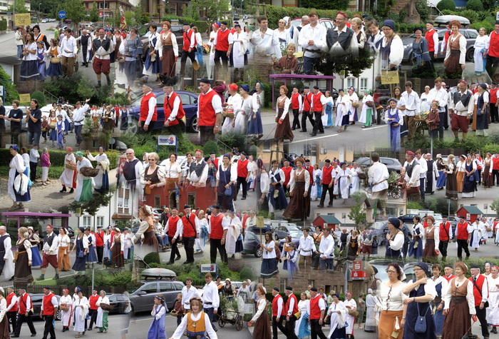Tänze der Patrizier aus Bretten in ihren prächtigen Gewändern. Der weit gereiste Magier Shri Magada aus Indien zog vor allem die Kinder in