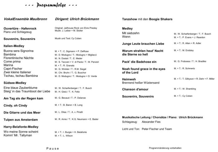 - "Capri-Fischer" - "Zwei kleine Italiener" - "Tschau, Tschau Bambina" (mit Solo von Christa). Der Funke springt gleich auf das Publikum über,